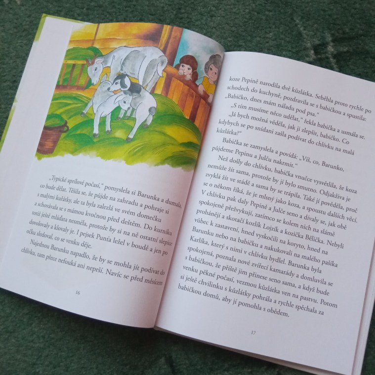 Barunčiny příhody našeho školkáčka bavily. Líbily se i mně, hned jsem si vybavila výše zmíněnou Honzíkovu cestu. Barunka podobně jako její nestárnoucí souputník Honzík tráví celé dny hraním venku, pozoruje svět kolem sebe a poznává nové věci za pomoci laskavé a hodné babičky. Kapitoly v knížce jsou krátké, takže čtení není náročné a bez problémů udrží pozornost malých posluchačů. Po každé kapitole následuje krátká básnička a na konci knížky najdete jejich zhudebněný zpěvníček. Publikaci ilustracemi doprovází Petra Šolcová. Její obrázky jsou barevné, výrazné, působí vesele a příjemně.